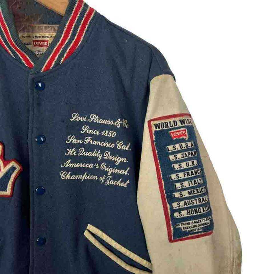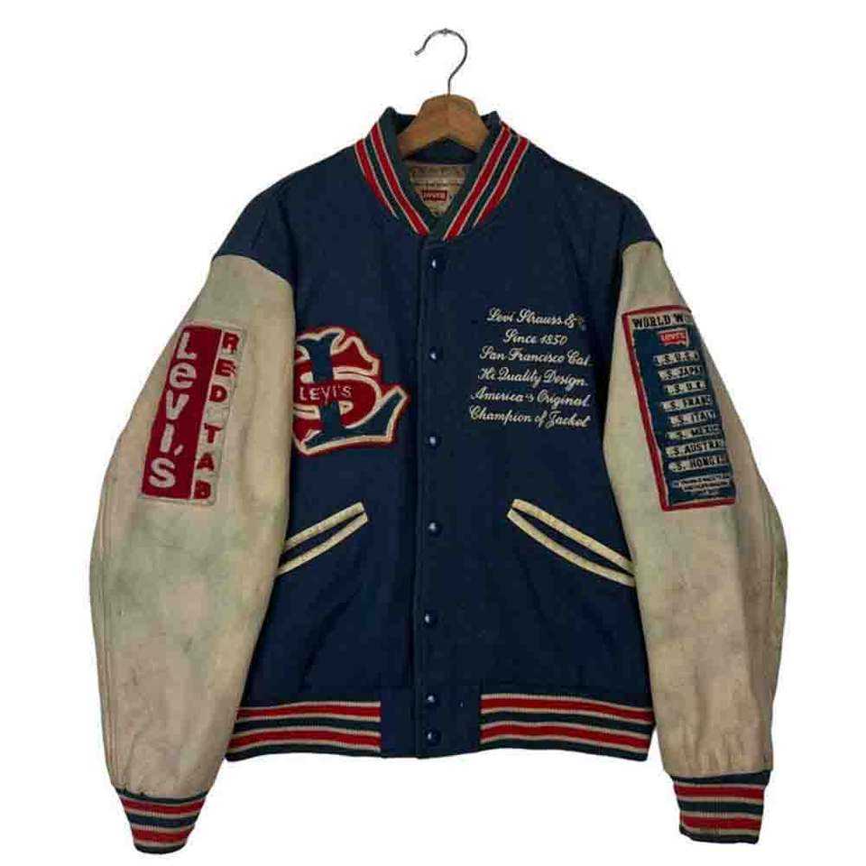 Veste de baseball en toile coupe slim VITHAS INDUSTRY, extérieur en laine/viscose, unisexe, hiver, bleu marine, manches rétro, style streetwear
