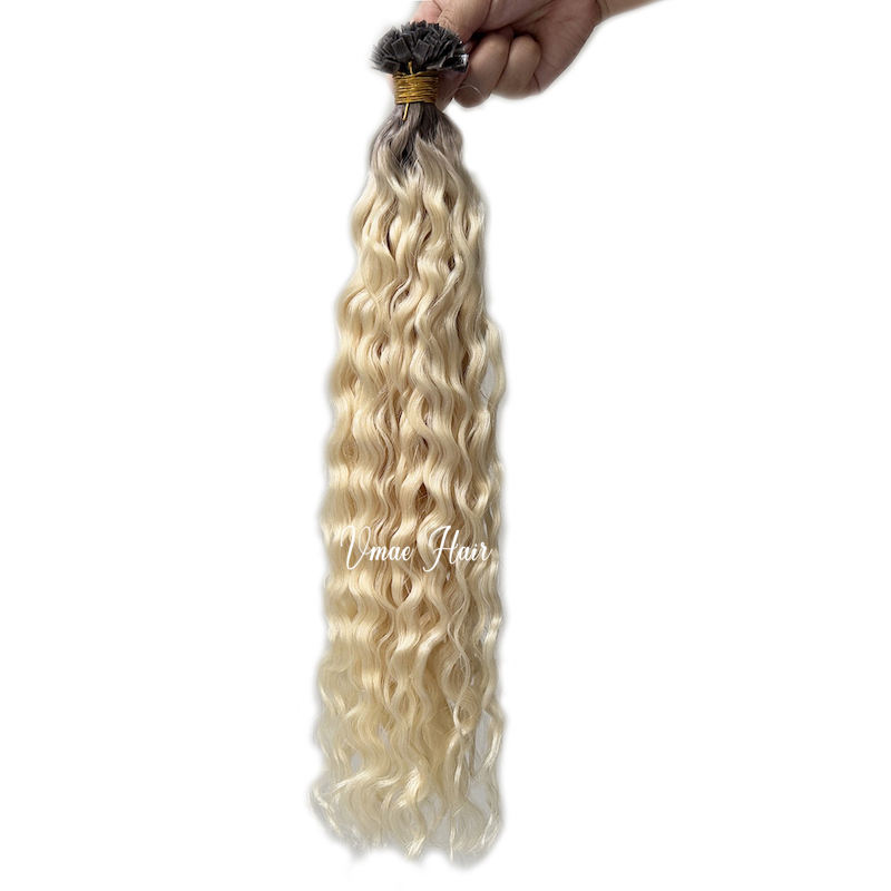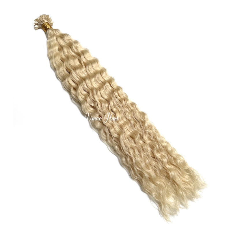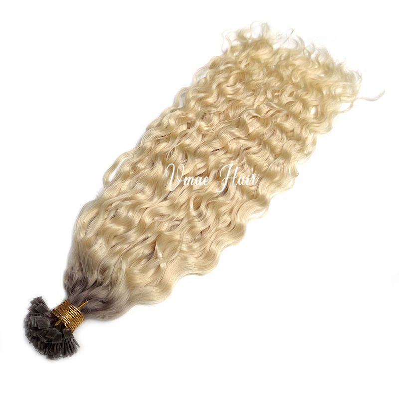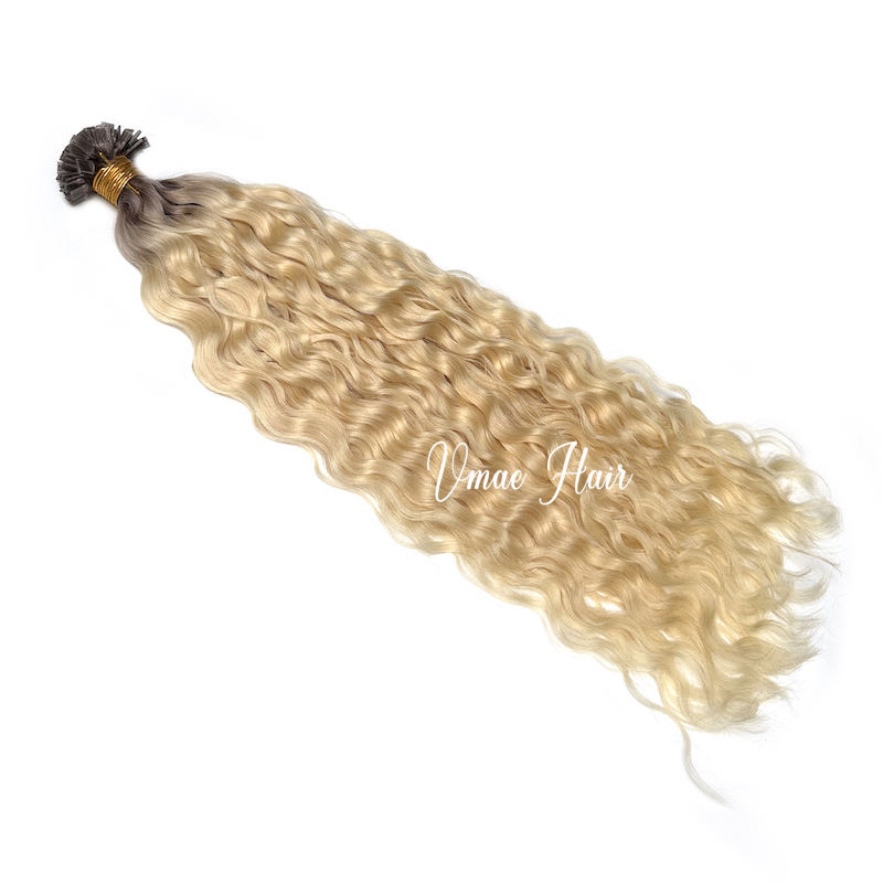 VMAE-Extensions de Cheveux Humains Ongles Plats à Cuticules Alignés en Eau Profonde, Ongles Vierges, Blonds Ombres Russes, I K Tip