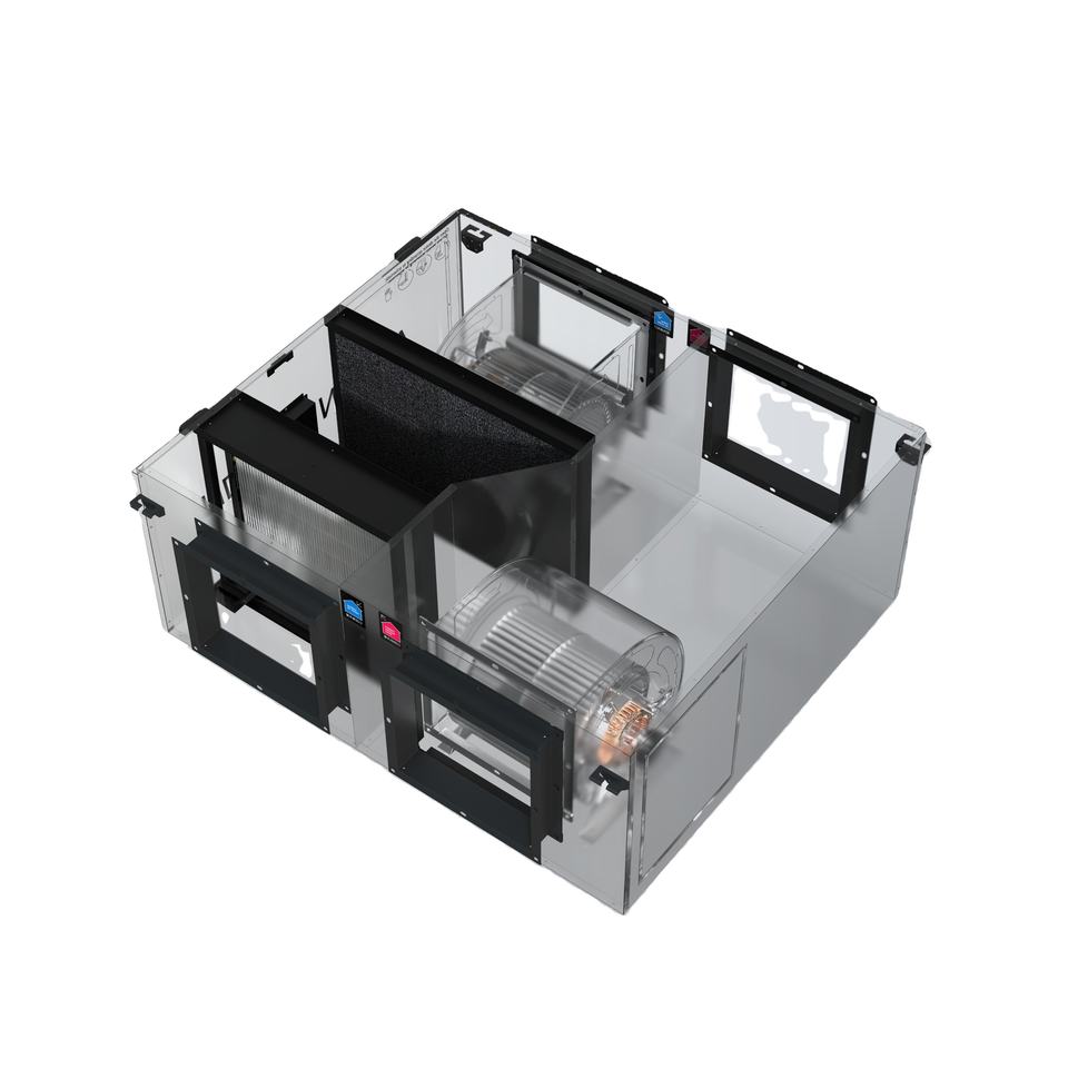 VMC DC 2000m3/h Unité de ventilation compacte à double débit pour exposition d'humidité Filtres à air frais Unité de traitement d'air rectangulaire