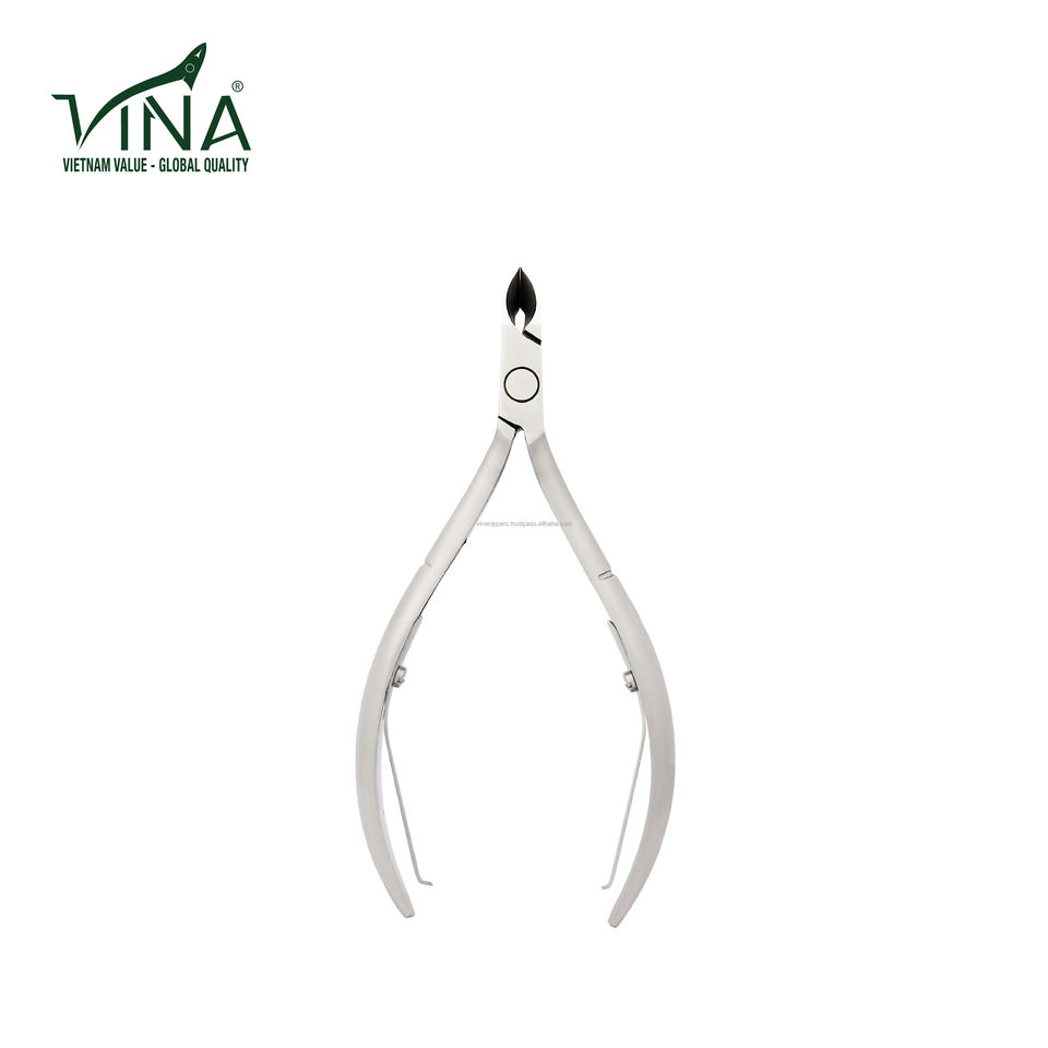 Pince à cuticules VNC-05-GC en acier inoxydable gris, à manche court et courbé, à lames biseautées, modèle professionnel durable pour la manucure des doigts