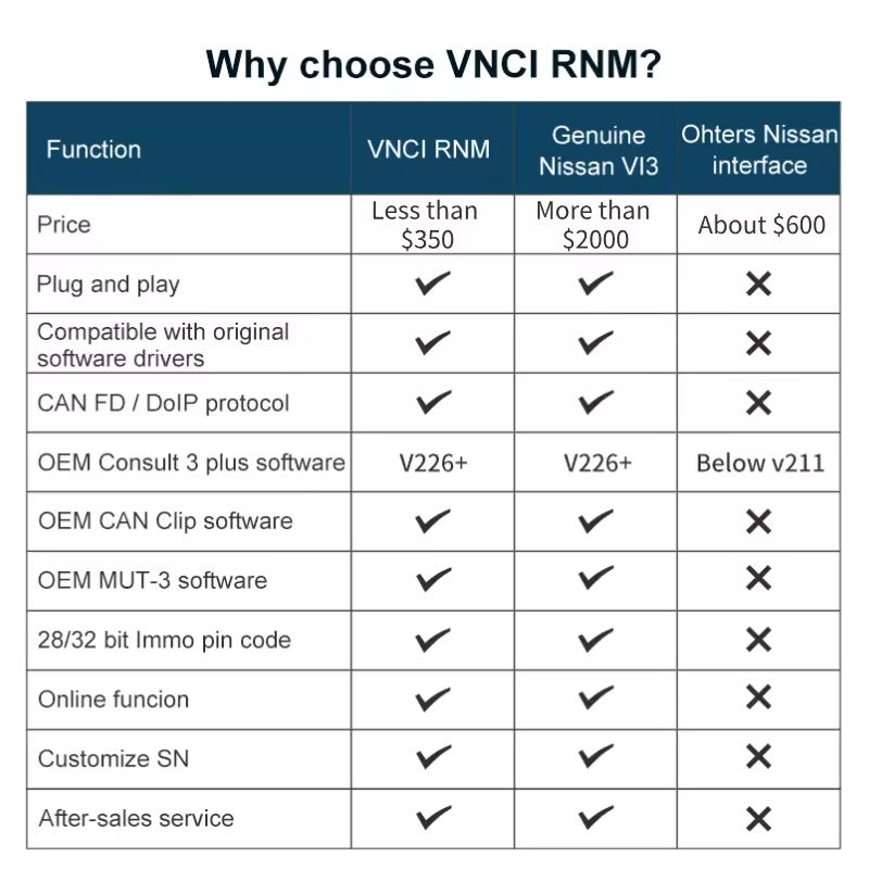 Outil de diagnostic VNCI RNM 3 en 1 pour Nissan, Renault et Mitsubishi, compatible avec le logiciel d'origine pour l'outil de diagnostic Nissan