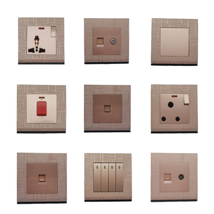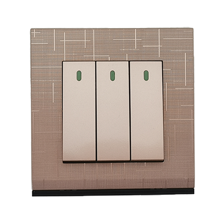 Interrupteurs muraux VNX UK Standard Gold Wire Drawing Color There Gang 10A avec néon, interrupteurs électriques pour la maison