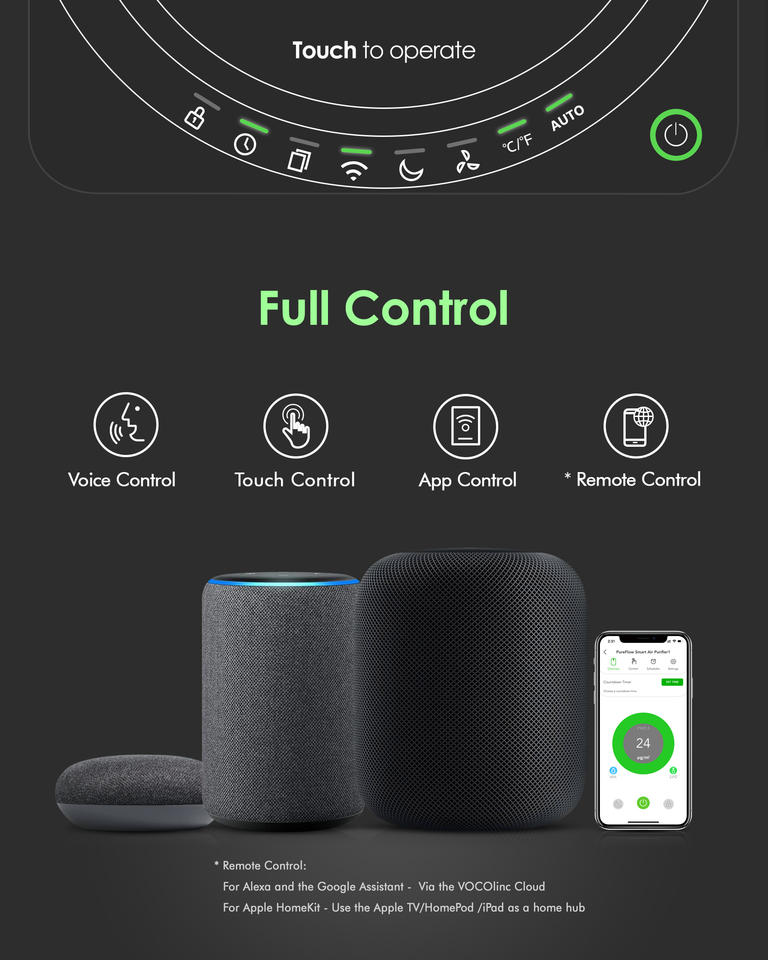 Purificateur d'air intelligent compatible HomeKit VOCOlinc 295CFM CADR 33-55dB Faible bruit Contrôle vocal Matériel PC Automatisation domestique