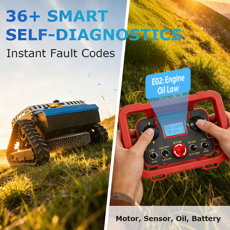 Mot-clé:Tondeuse à gazon télécommandée, Tondeuse hybride RC pour pentes, Coupe-herbe à chenilles