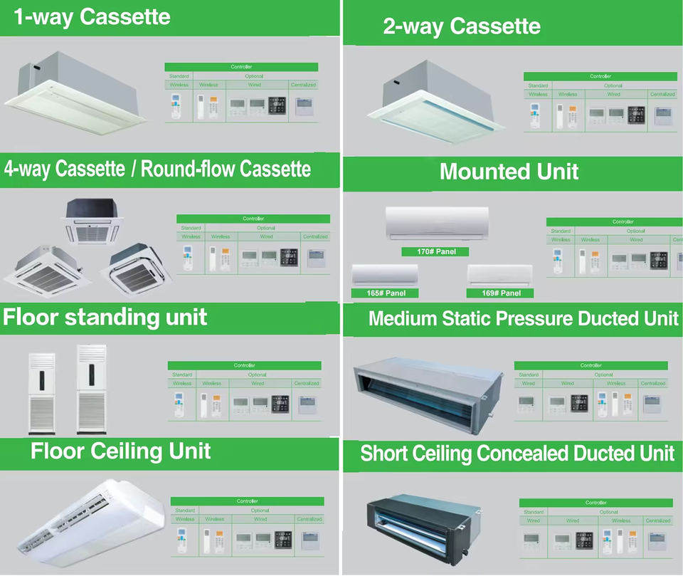 Système de climatisation VRV VRF HVAC, climatisation centrale pour usage domestique et commercial, climatisation multizones, application Wifi
