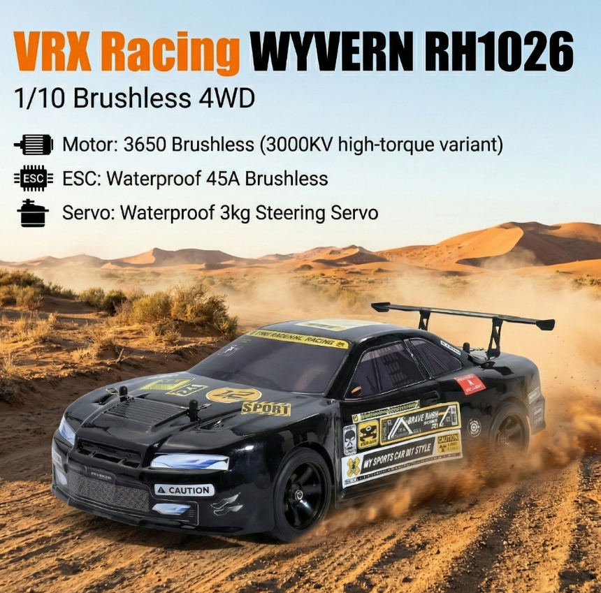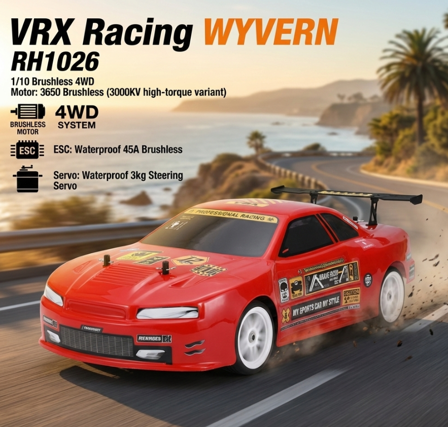 Voiture de course RC VRX Racing RH1026 WYVERN 1/10, véhicule tout-terrain 4x4 brushless, voiture de drift électrique haute vitesse, niveau hobby, RTR