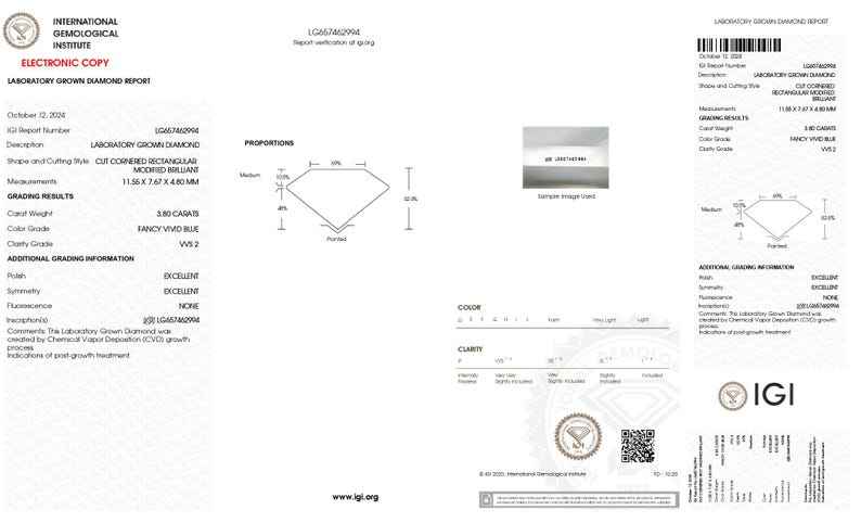 VS Clarity 9 Radiant Cut Lab Grown Diamond IGI Certified Fancy Vivid Blue Loose Lab Diamond For Bracelet