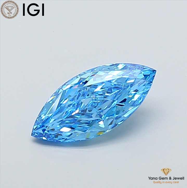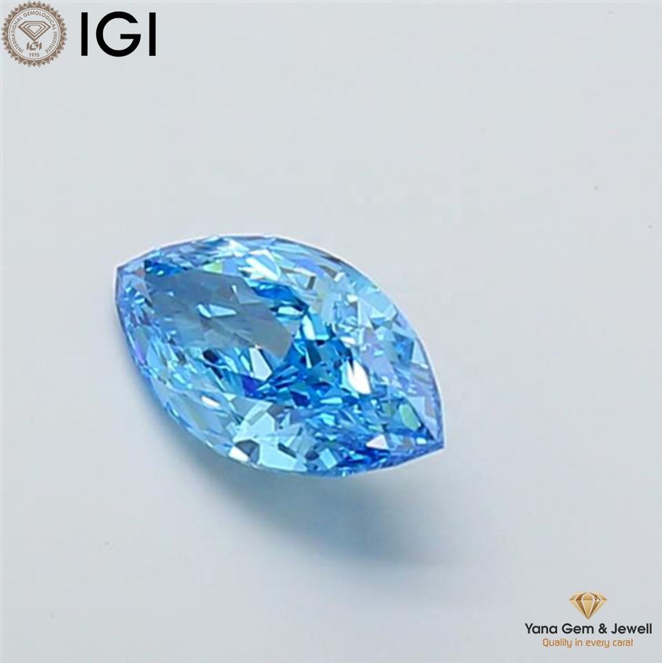 Diamant de laboratoire cultivé CVD de forme marquise, couleur bleu vif fantaisie, clarté VS2, 3,01 carats, avec certificat IGI, pour un luxe exceptionnel