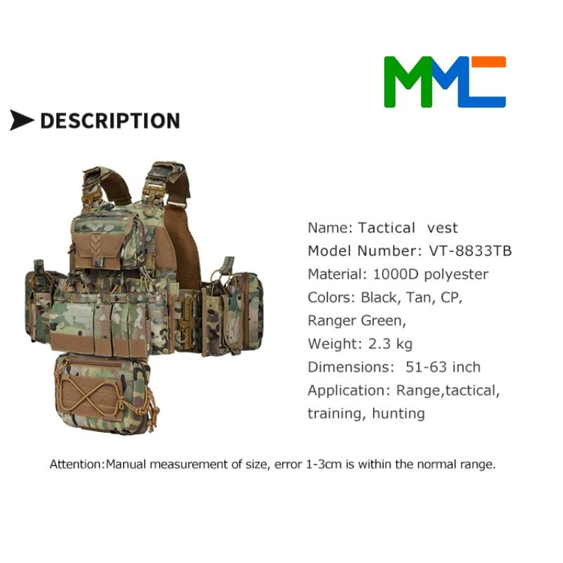 Sac à dos tactique camouflage VT-8833TB MMC - Matériel en polyester, sangle de poitrine, utilisation multifonctionnelle en extérieur