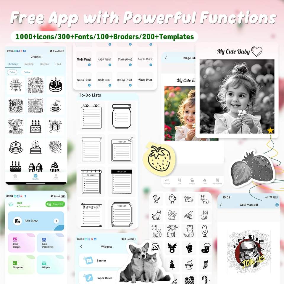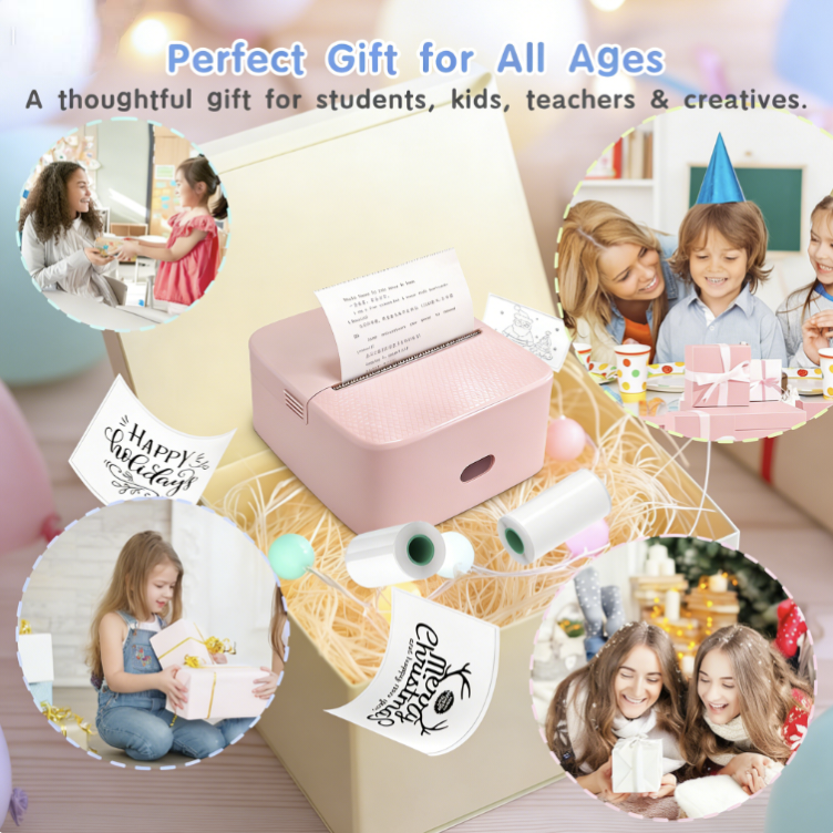 Imprimante thermique d'autocollants VTR Mini pour la création d'autocollants portables pour téléphone/carnet/photo/autocollants personnalisés et scrapbooking - Rose