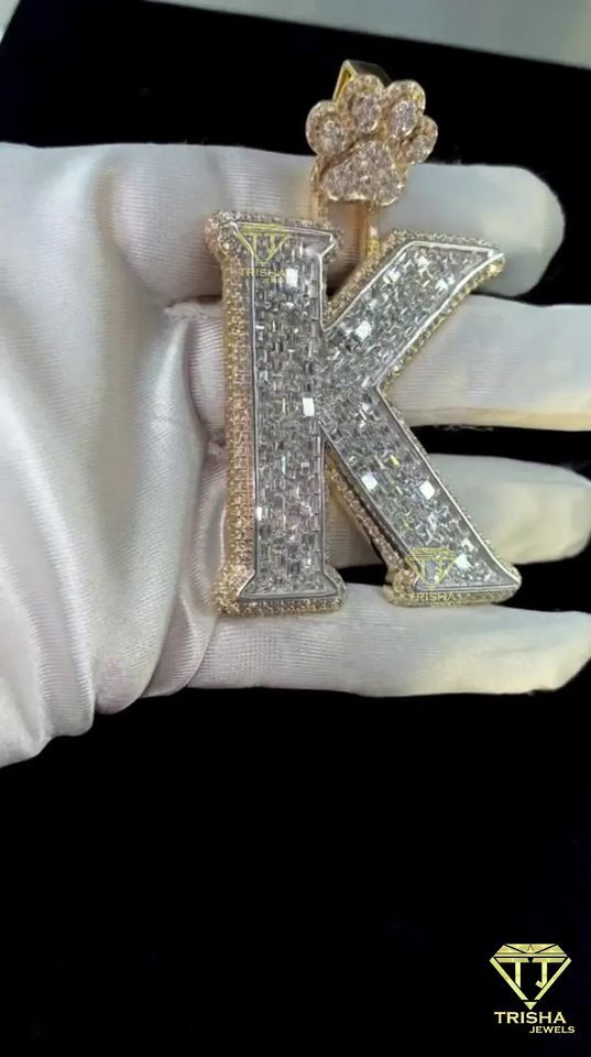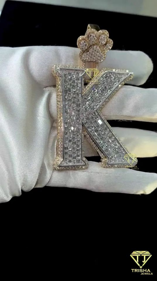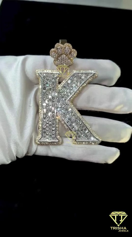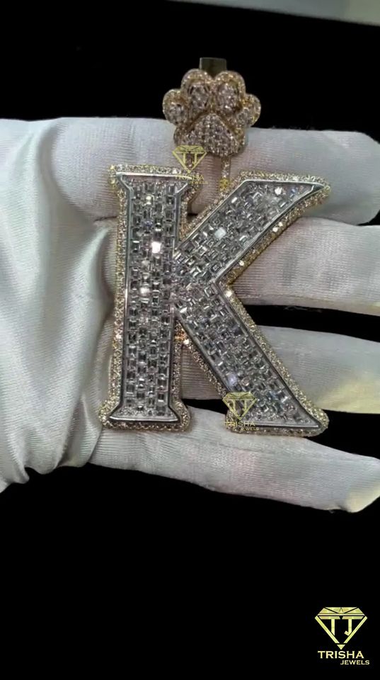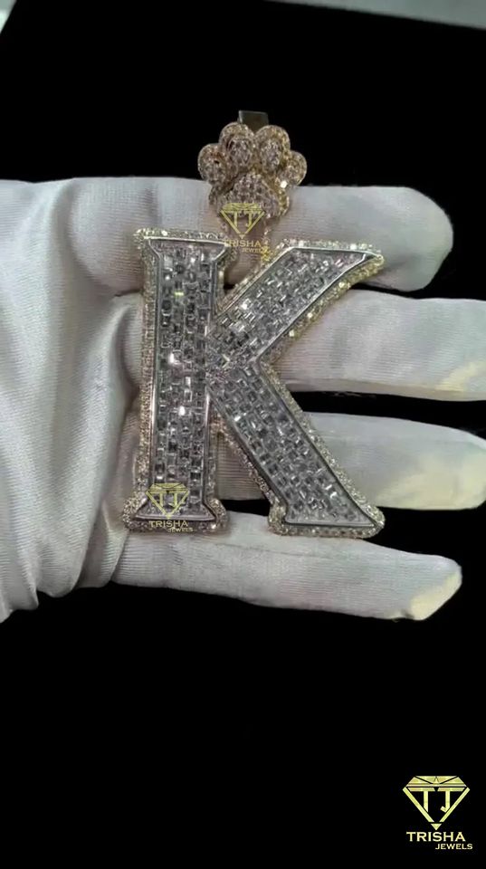 Pendentif "K" lettre en couches cultivées par VVS Lab, pendentif glacé lettre personnalisée pendentif Hip Hop en argent sterling 925