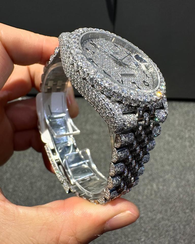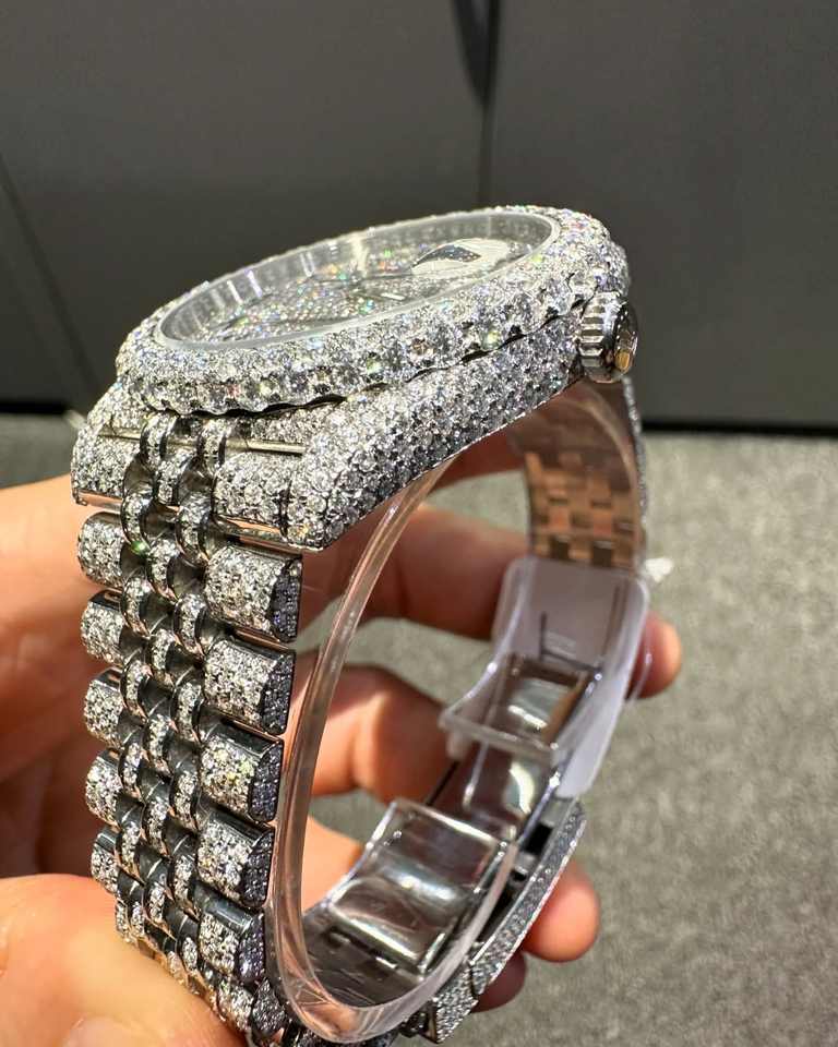 VVS Moissanite Alloy Quartz Glass Dial Luxury Diamond Wristwatch for Men White Alloy Band Hip Hop Style