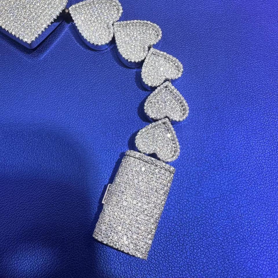 Bracelet à breloques en forme de cœur personnalisé en moissanite VVS, 8 pouces, argent sterling 925, plaqué argent, luxe, tendance hip-hop