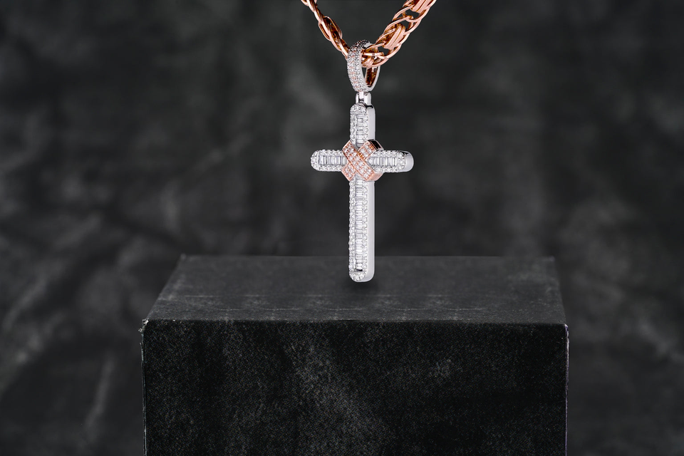 VVS Moissanite diamant Hip Hop Iced Out Pendentif or rose et argent Pendentif avec pendentif en acier inoxydable prêt à expédier