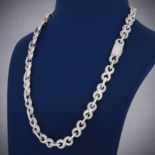 Chaîne cubaine en diamants VVS1 Infinity Link, argent sterling 925, plaqué argent, bijoux de luxe pour le corps, cadeau de mariage ou de la Saint-Valentin, RATAN JEWELS