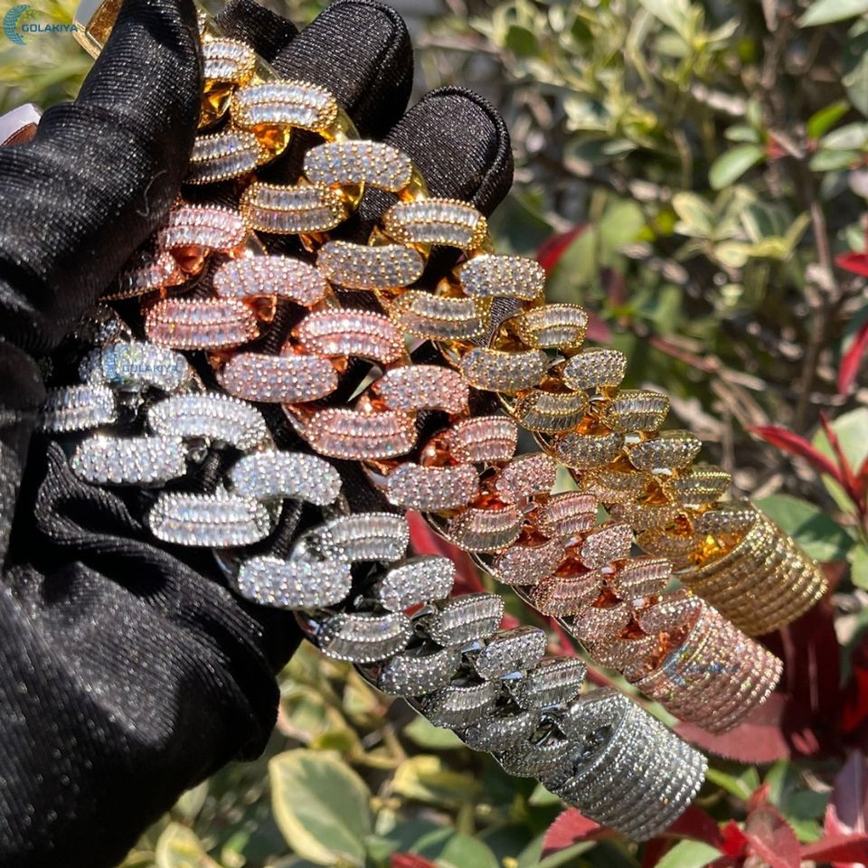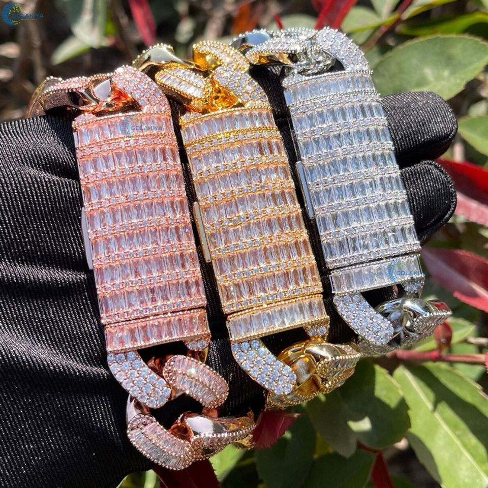Bracelet de luxe pour homme, style hip-hop, entièrement serti de diamants de laboratoire VVS1, plaqué or, chaîne cubaine, bracelet de mode pour homme