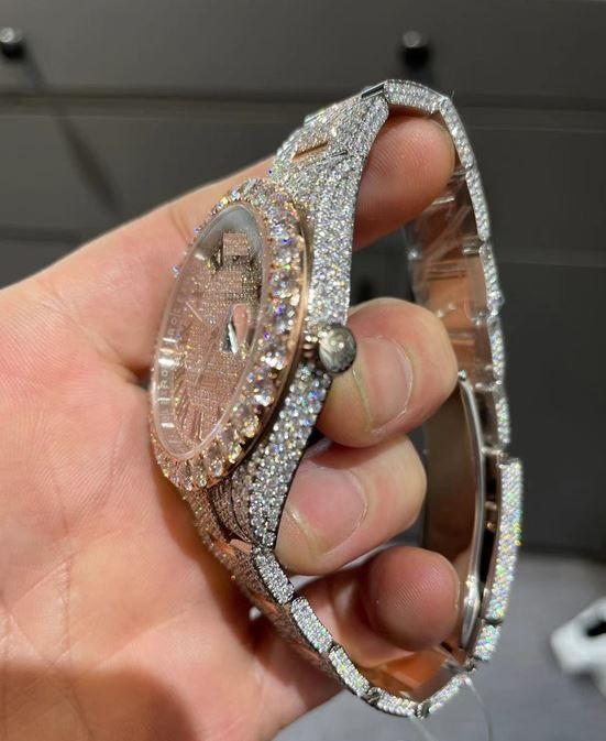 VVS1 White Moissanite Diamond Automatic 40MM Stainless Steel Full Bust Watch for Adults Unique Mechanical Design Glass Dial