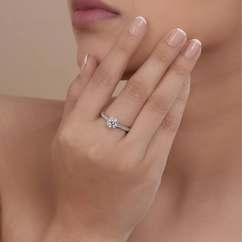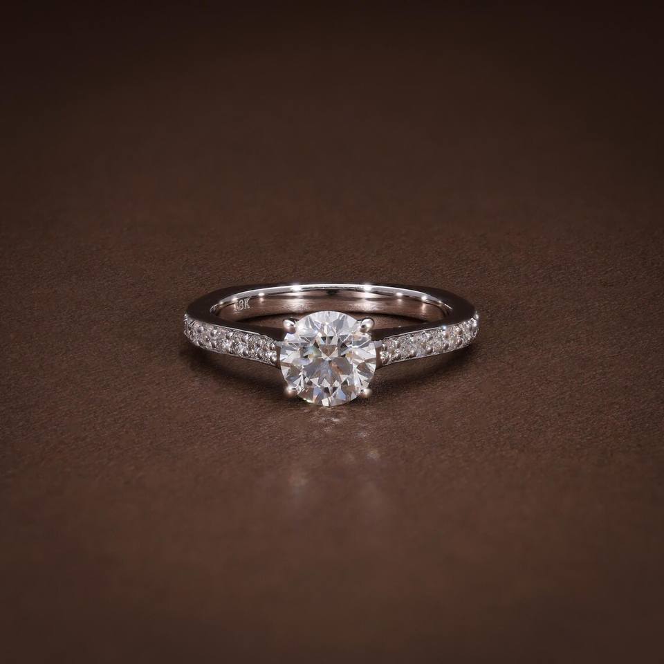 Bague de fiançailles en diamant rond cultivé en laboratoire certifié VVS2, or 14K 18K, solitaire classique, bague de demande en mariage pour elle