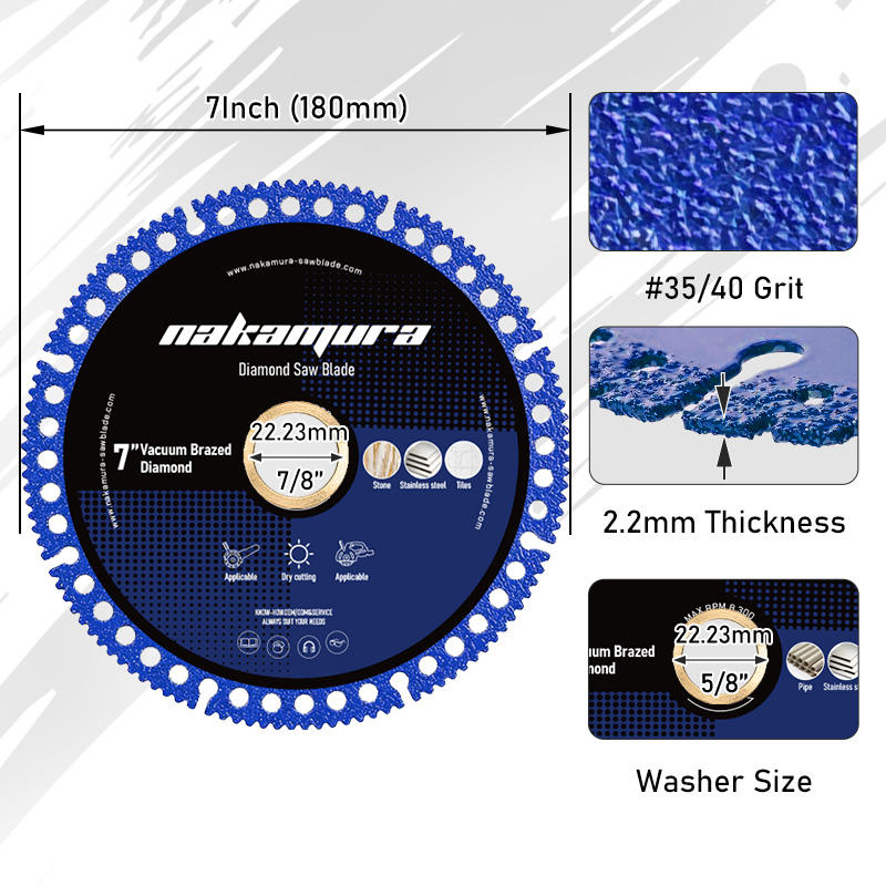 Lame de scie diamantée composite multi-usages brasée sous vide pour meuleuse d'angle, coupe du marbre, du métal, de la fonte, personnalisable OEM