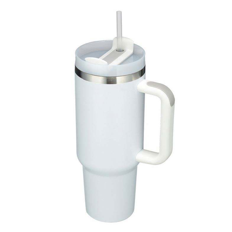 Vacuum Insulated Wholesale 40Oz Multiple Colors Stainless Steel Handle Travel Coffee Powder Coated Travel Mug With Lid and Straw