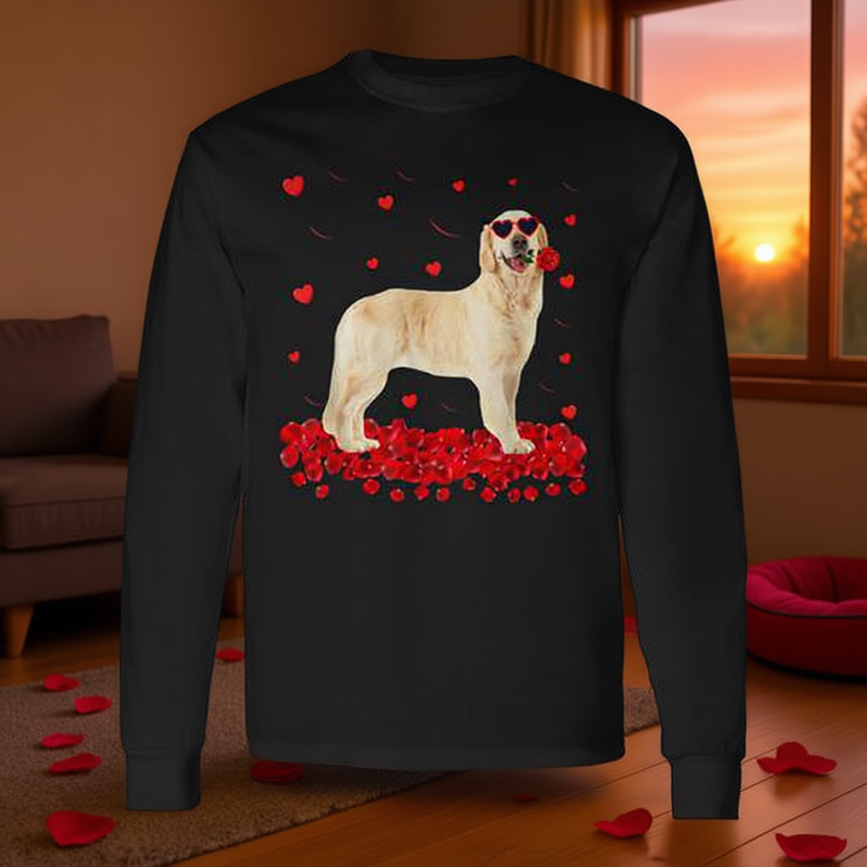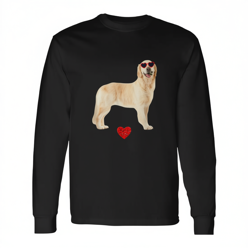 Idée cadeau pour la Saint-Valentin : T-shirt à manches longues avec adorable Golden Retriever et cœur pour les amoureux des chiens