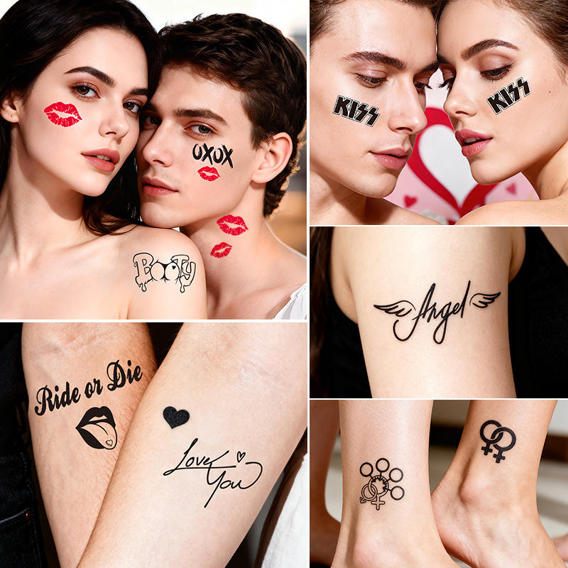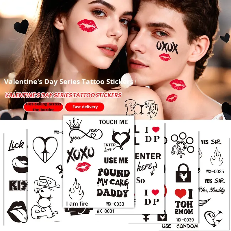 Tatouage temporaire personnalisé pour la Saint-Valentin, autocollant pour l'art corporel, visage, forme de cœur, impression quadricolore, dure 3 à 5 jours, pour les fêtes
