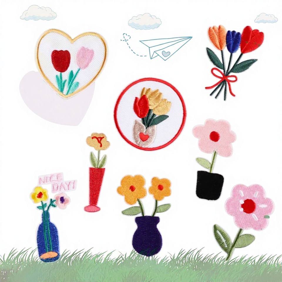 Série Saint-Valentin : Étiquette brodée à l'ordinateur, Patch fleur rose, Accessoires vestimentaires, Broderie autocollante pour carnet de notes