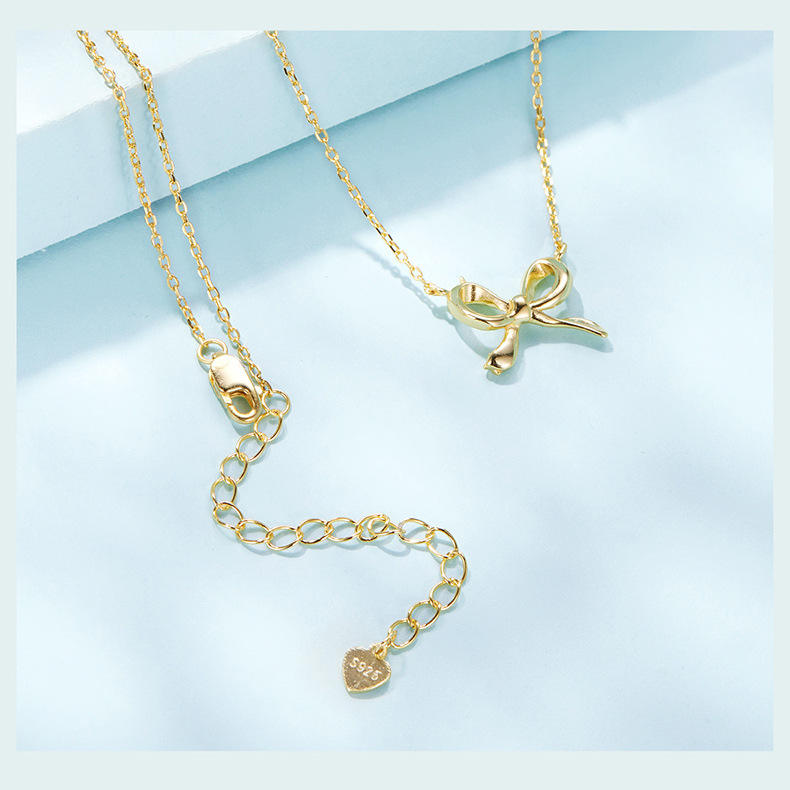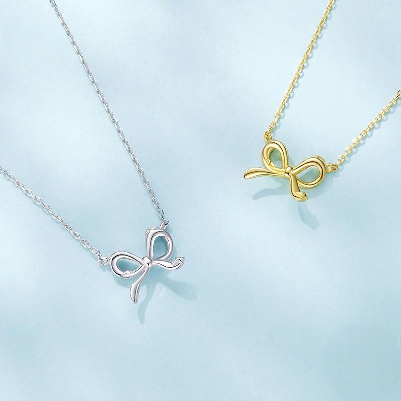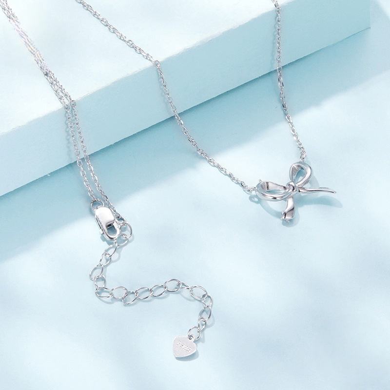 Pendentif nœud papillon en argent sterling S925 de style simple pour la Saint-Valentin avec trou bilatéral pour la fabrication de colliers de bijoux cadeaux de mariage