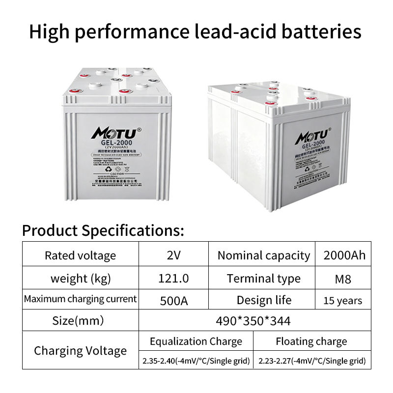 Batterie gel rechargeable régulée par valve 2V 2000Ah, batteries SLA AGM pour éclairage d'urgence, stockage d'énergie solaire
