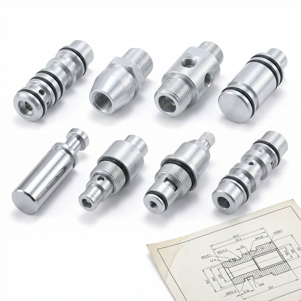 Cartouche de valve, piston, plongeur usinés de précision en aluminium 6061 7075 usiné CNC de haute précision