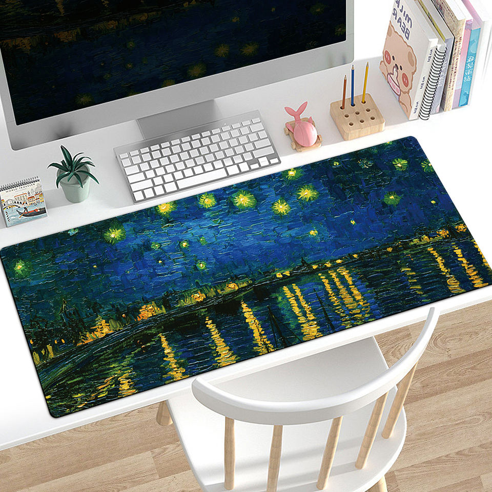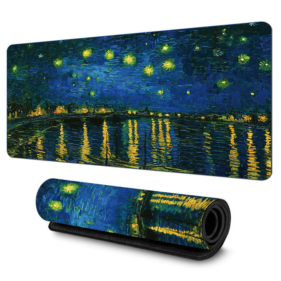 Tapis de souris de jeu grand format Van Gogh Starry Sky, résistant à l'eau, anti-rayures, en caoutchouc naturel, tapis de bureau, stock CS GO LOL