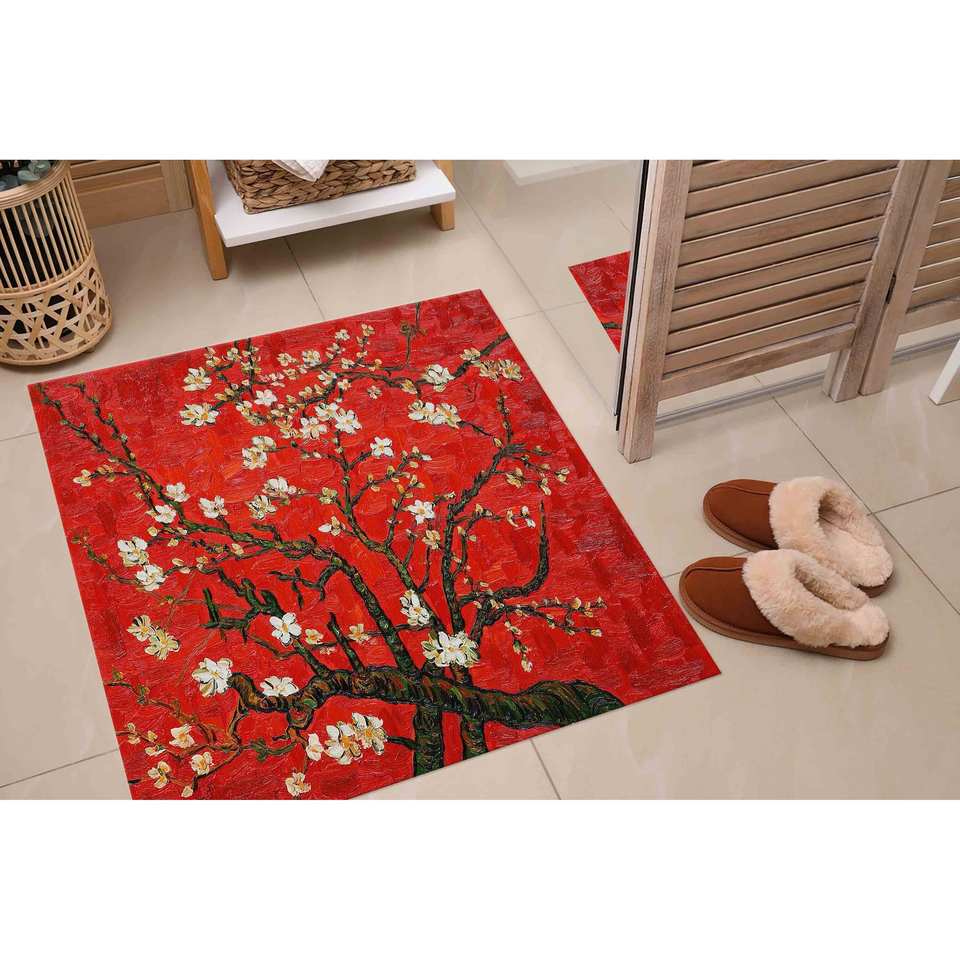 Tapis à motif d'arbre de Van Gogh, Amandier en fleurs, Tapis botanique, Tapis doux non tissé