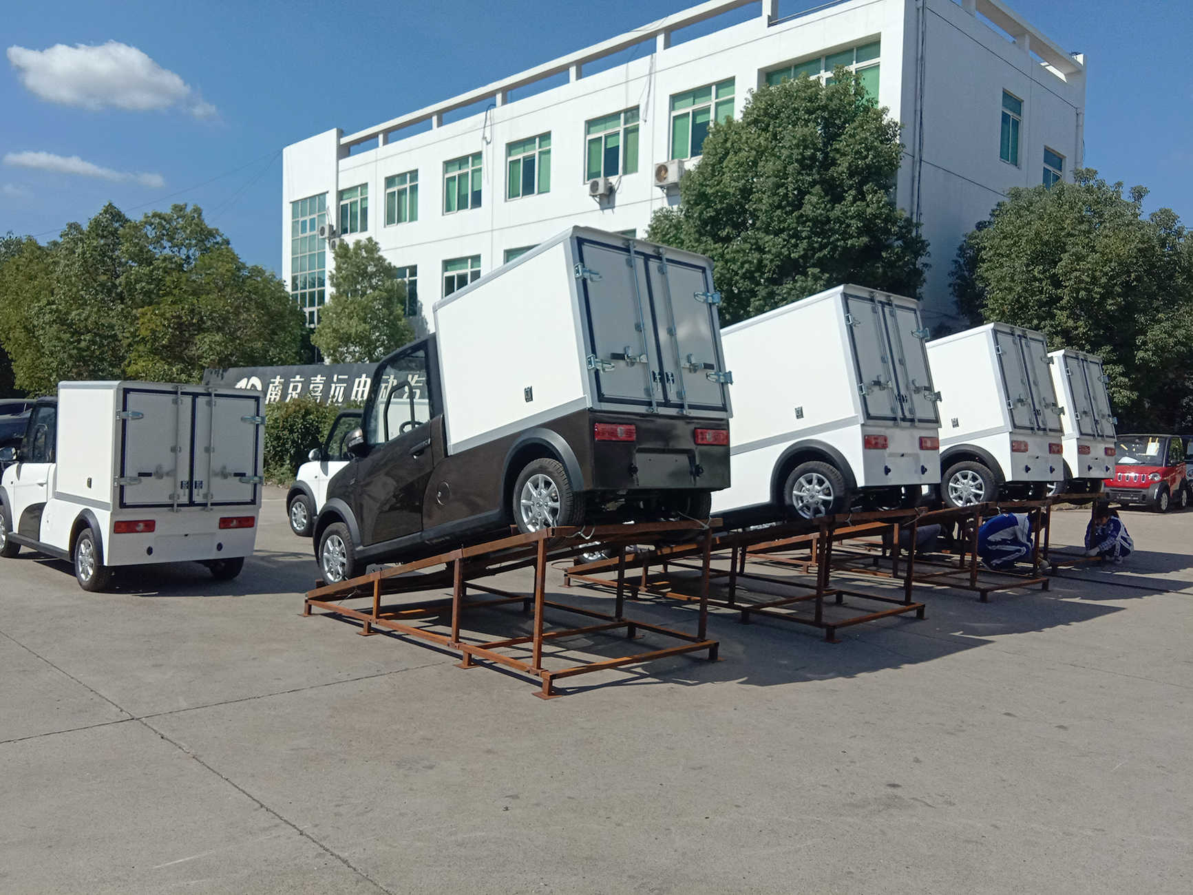 Each electric pickup truck packed with pallet