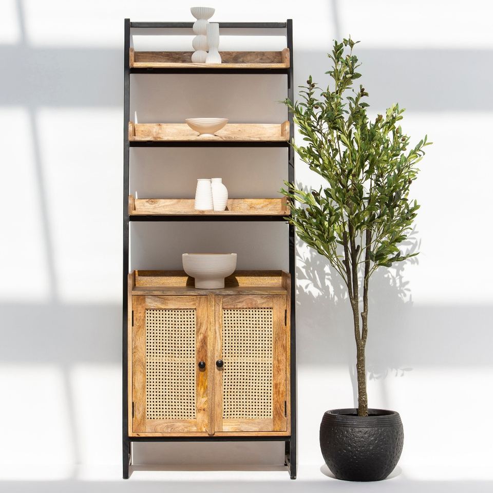 Étagère échelle en rotin Vandana Altis Vista – Design moderne en bois tressé naturel pour rangement