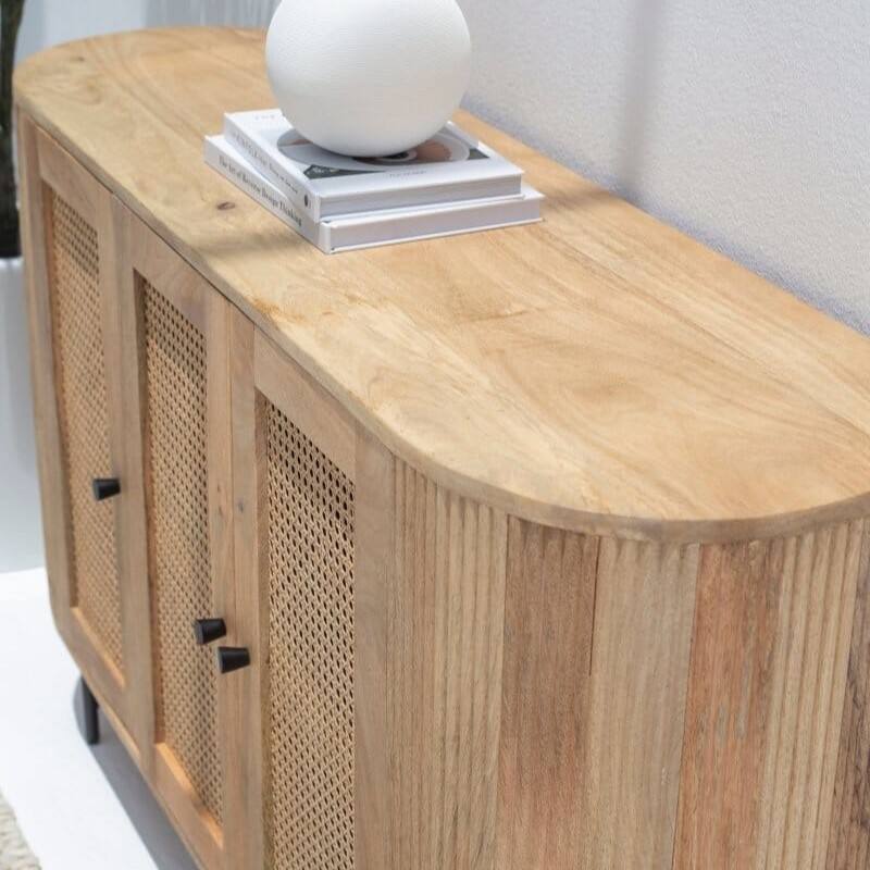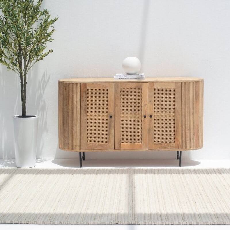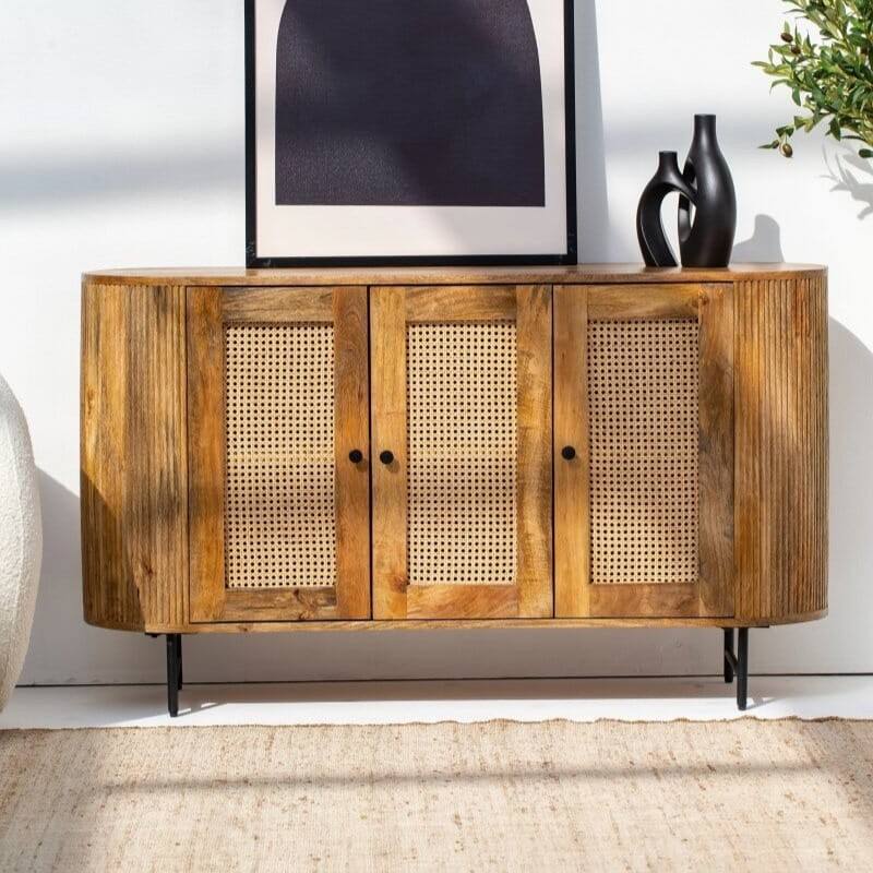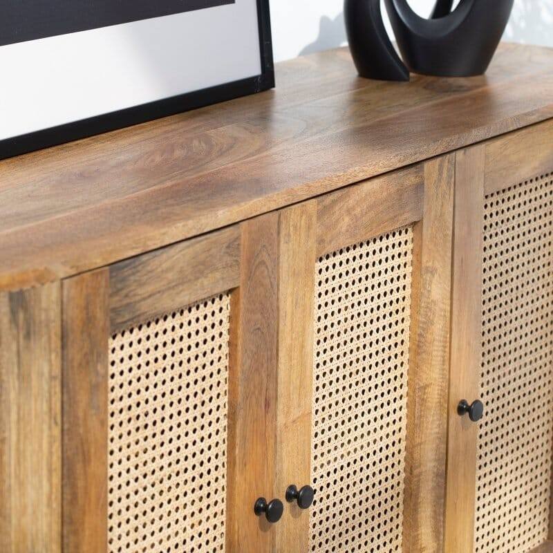 Buffet à portes en rotin Vandana Falcon Nova 3 avec rangement élégant pour les intérieurs de maisons modernes