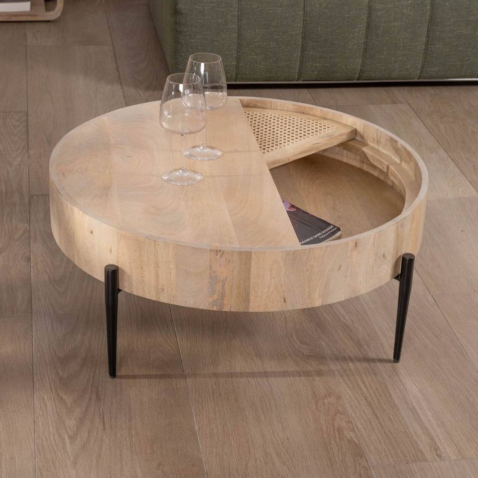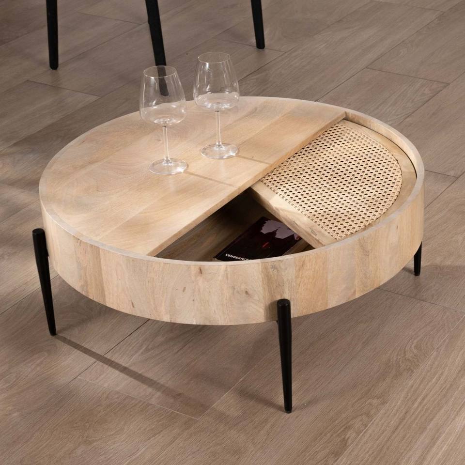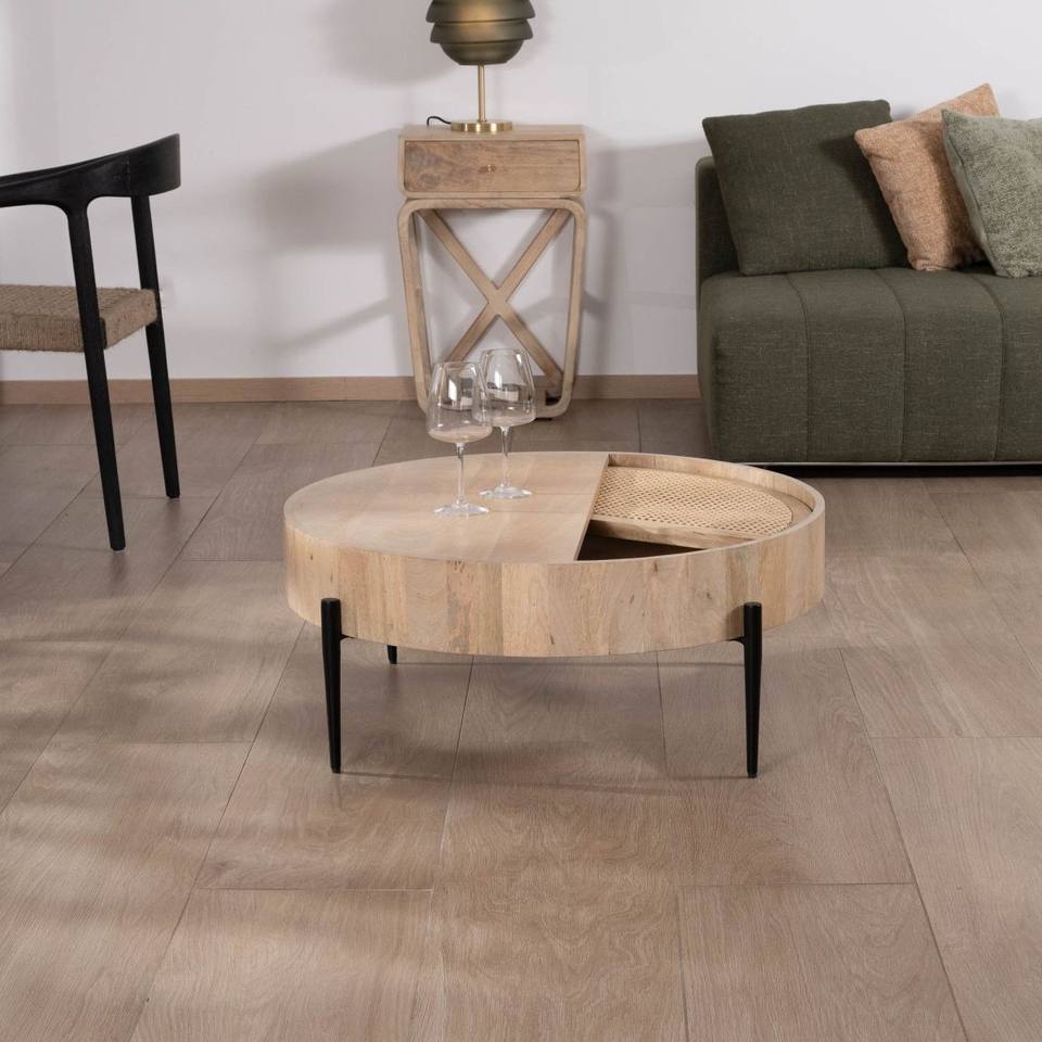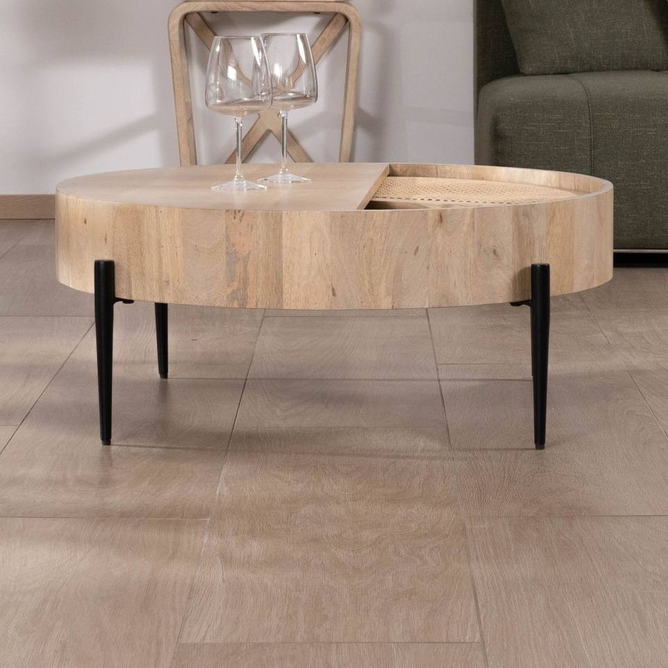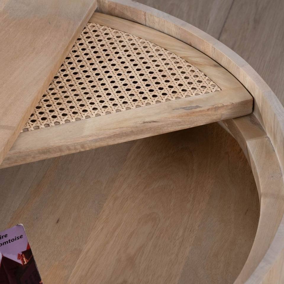 Table basse ronde Vandana Golden Core avec plateau pivotant en rotin Loopie diamètre 80 cm