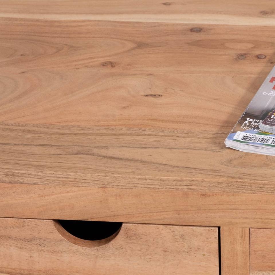 Table basse rectangulaire Vandana Golden Flow en acacia massif Nüma 100 cm avec tiroirs