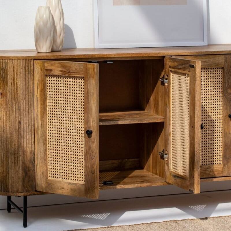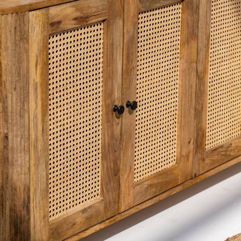 Buffet à 4 portes en rotin Vandana Pebble Lyra pour des intérieurs et extérieurs modernes et élégants