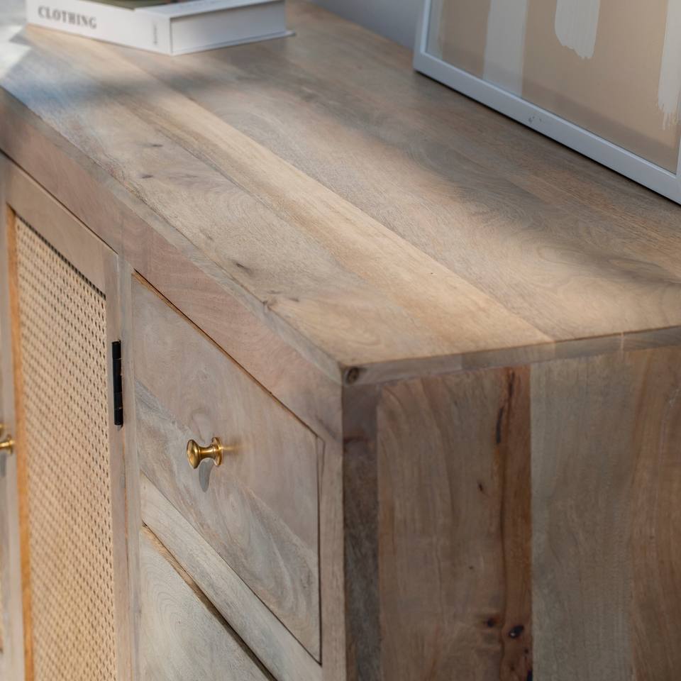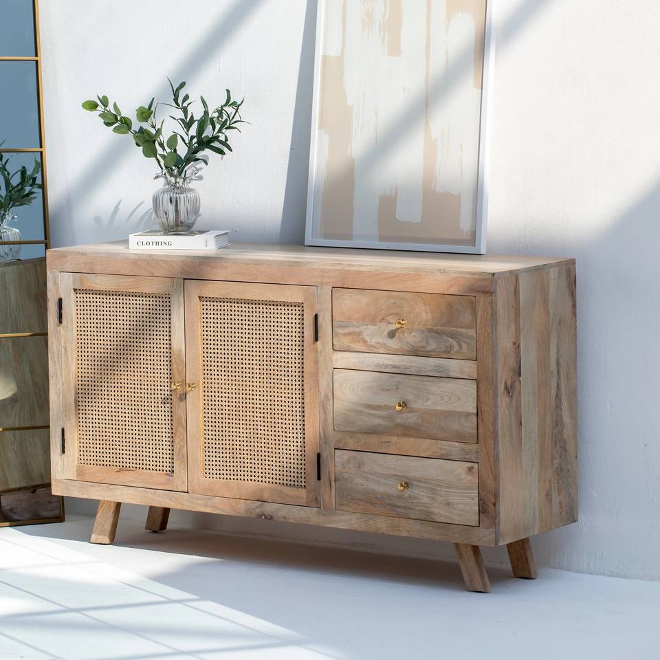 Buffet en rotin Vandana Pebble Neo pour des intérieurs modernes élégants, adaptés à l'intérieur et à l'extérieur