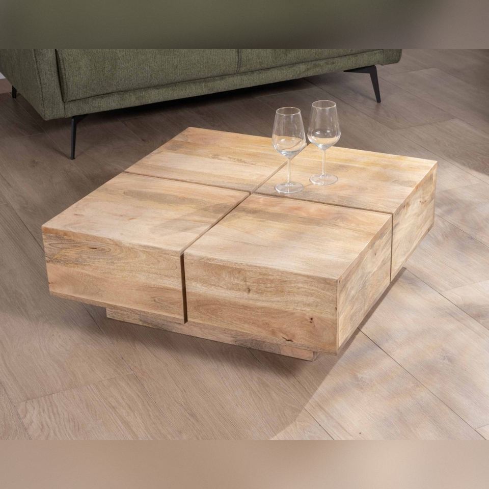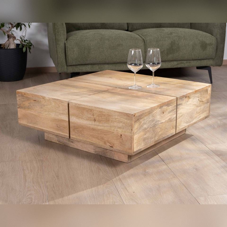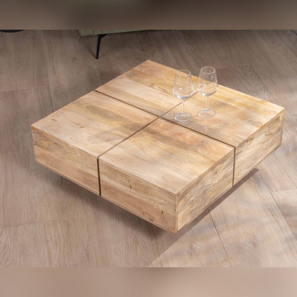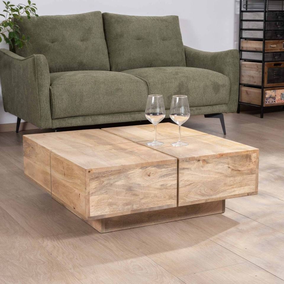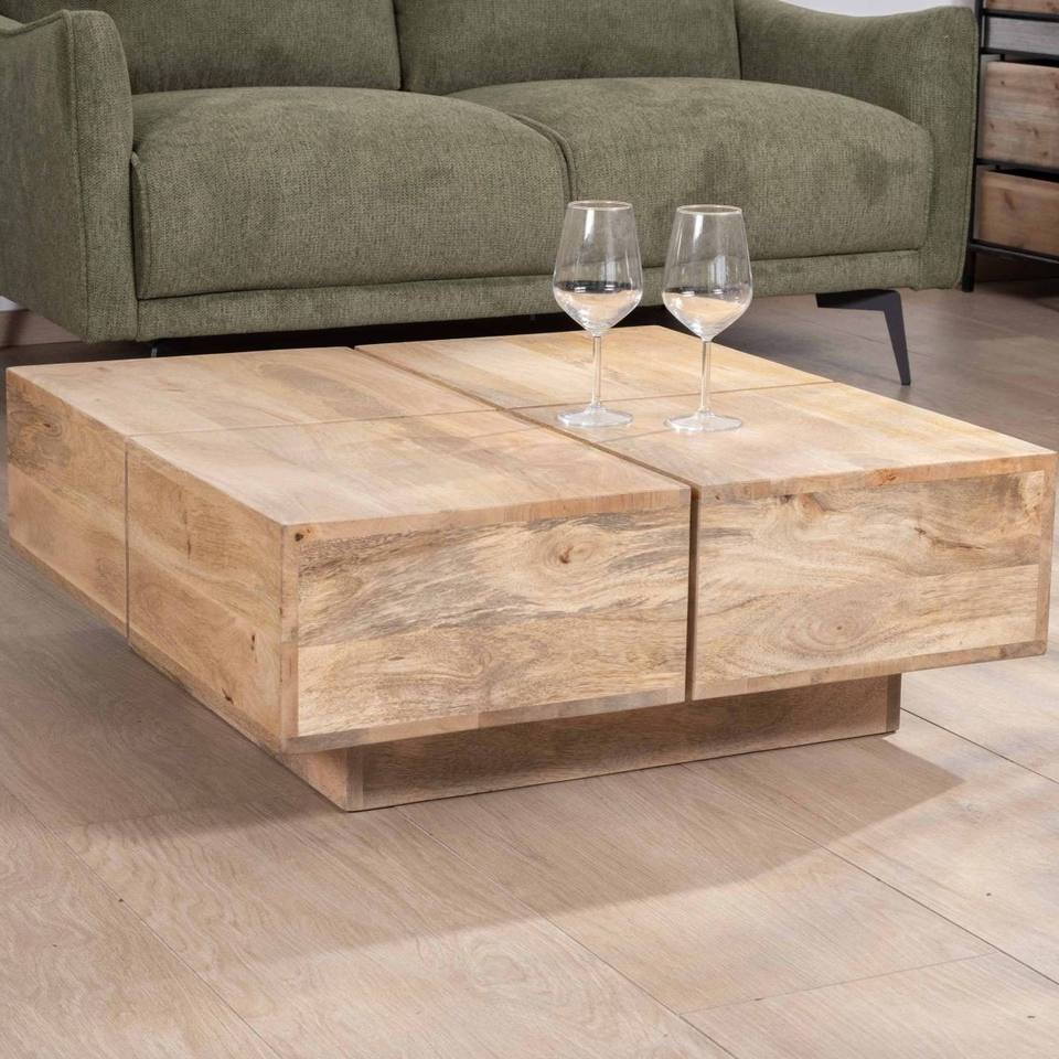 Table basse carrée Vandana Silver Design de style contemporain, en bois massif naturel
