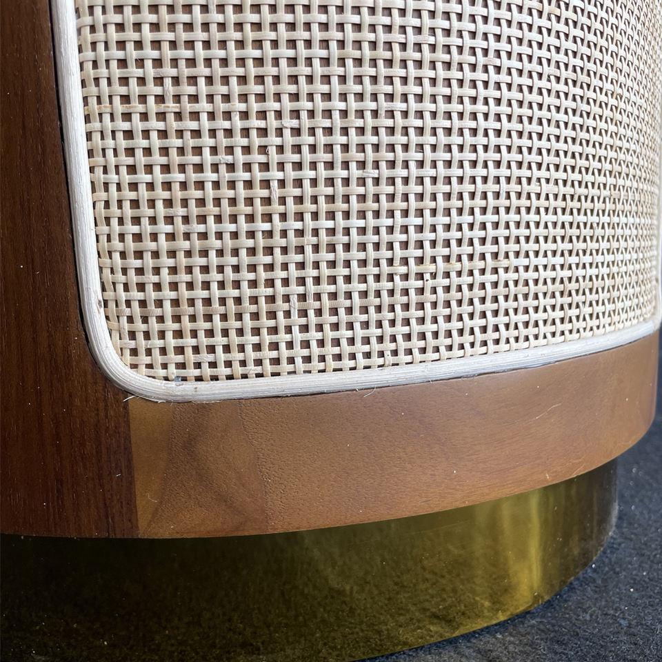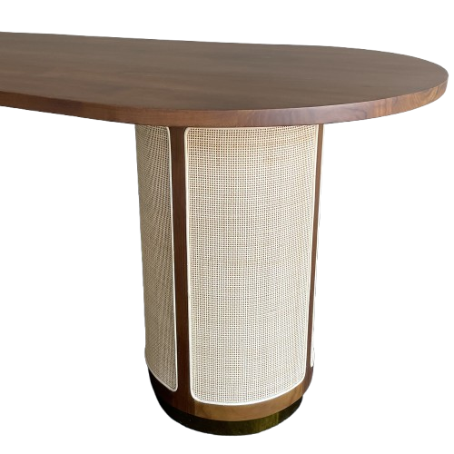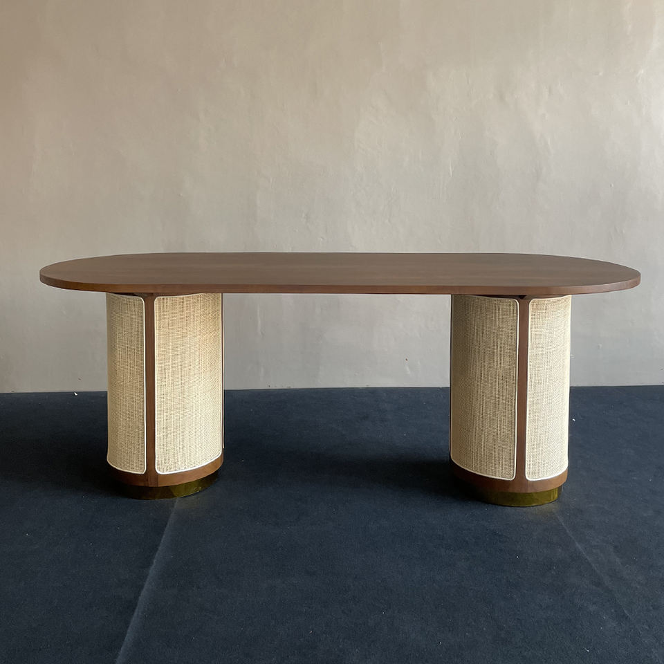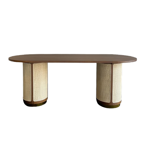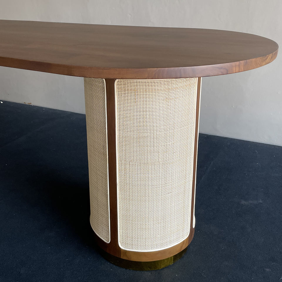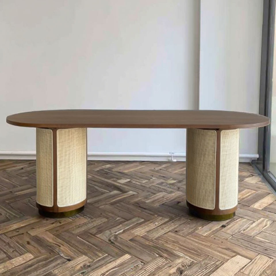 Table de salle à manger ovale Vanessa en bois de teck massif pieds en rotin naturel accents en laiton élégants ajoute de la chaleur sophistication hôtel maison
