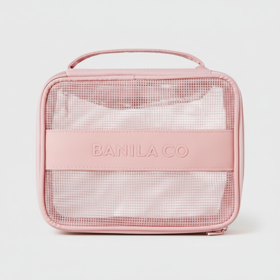 Vanillaco Portable Small Case Square Pouch with Zipper Closure Mesh Material Letter Pattern Soft Handle Discounted