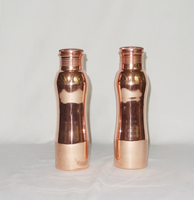 Bouteille d'eau moderne faite à la main en cuivre pur YOGA Thermos Design Satin pur cuivre 600 et 900 ml-pour la santé Yoga Ayurveda