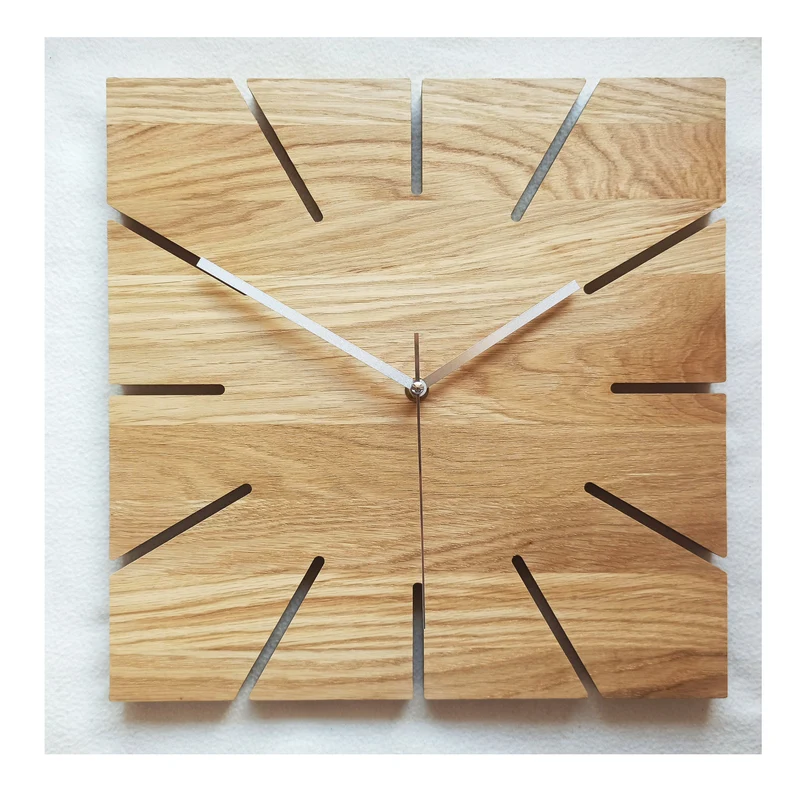 Varandah Wall Clock Square Wood Wall Mounted Big Clock Large Living Room Decoration Wall Art Home Weather Station