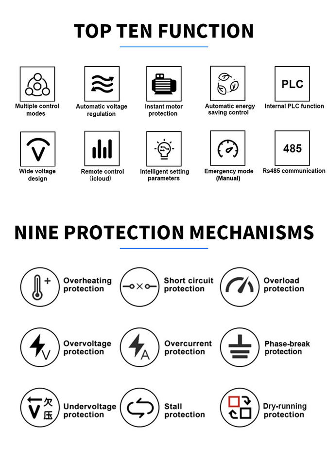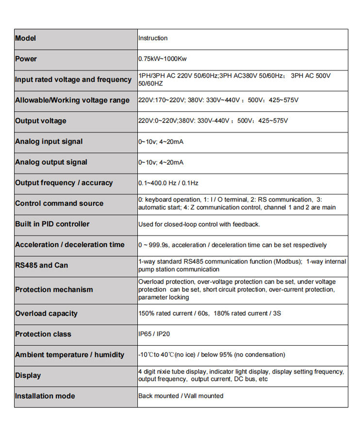 Input rated voltage and frequency:1PH/3PH AC 220V 50/60Hz;3PH AC380V 50/60Hz
