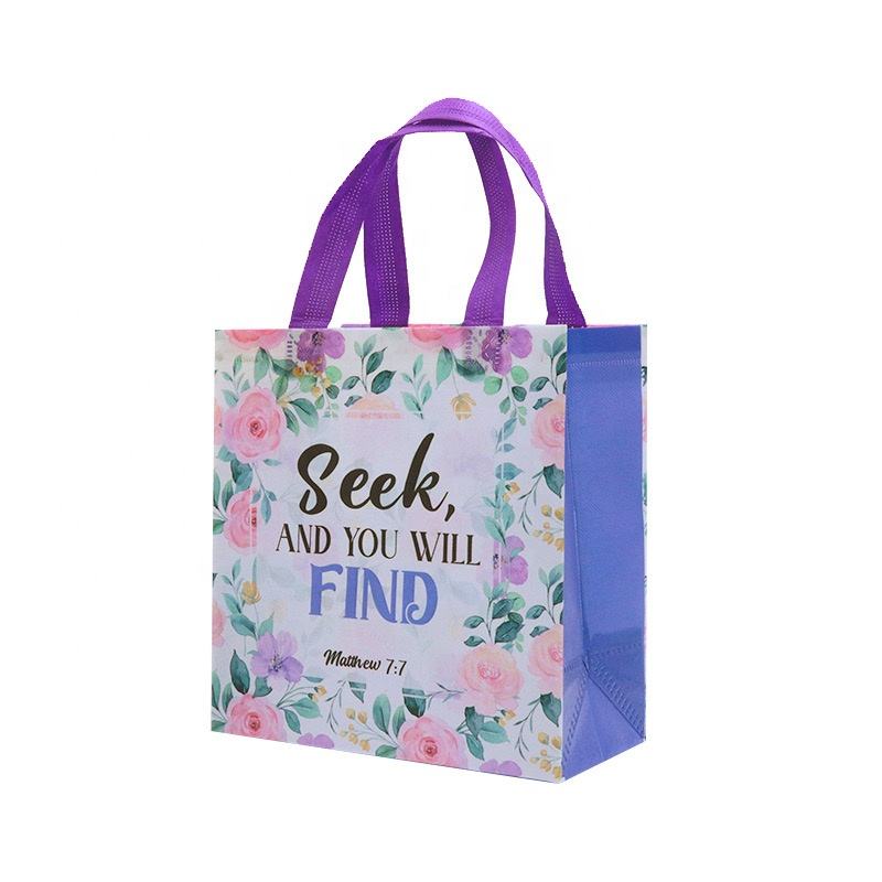 Sac à Bible en PP non tissé réutilisable et écologique avec motif floral varié A-2647