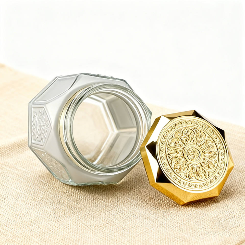 Bouteilles en verre cosmétiques octogonales de 150 ml, diverses couleurs, vides, en stock, vente directe, personnalisation du LOGO, sculpture en relief, pot en verre