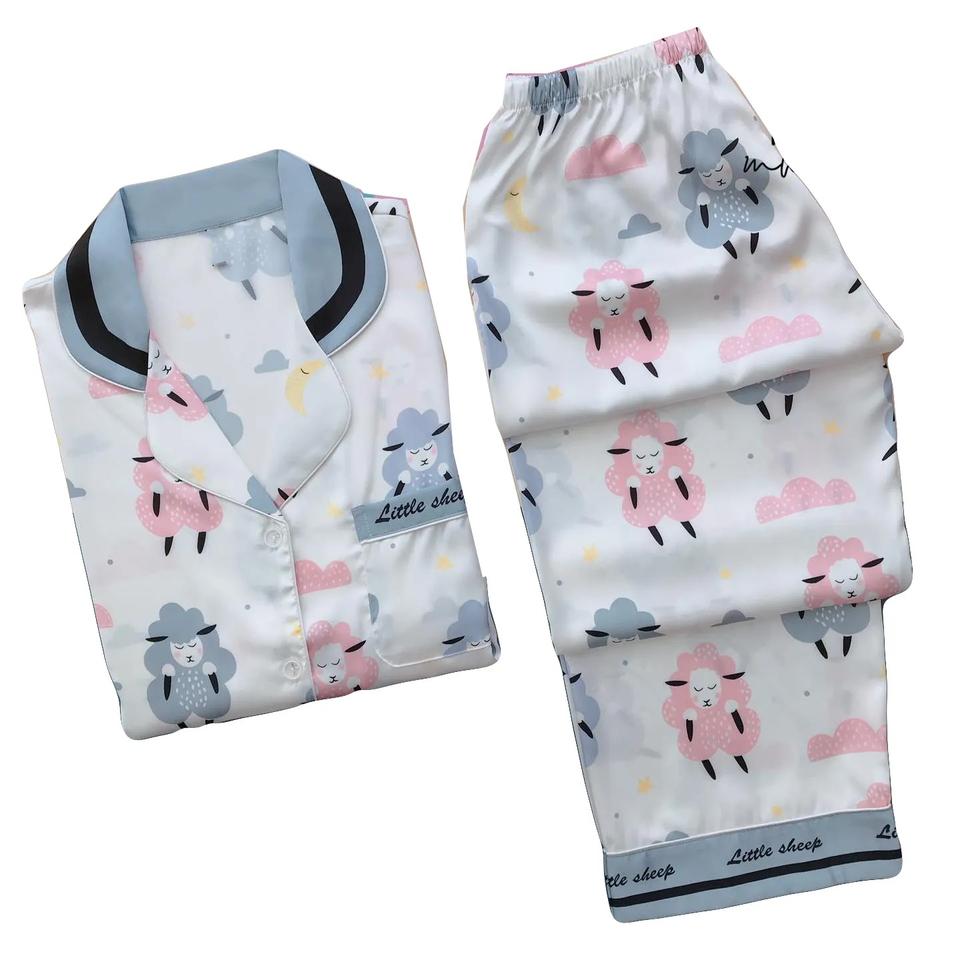 Pyjama pour femmes en satin de soie respirant à séchage rapide 100% coton à taille élastique pour l'hiver et l'été, col rabattu, uni, teinture unie, OEM/ODM