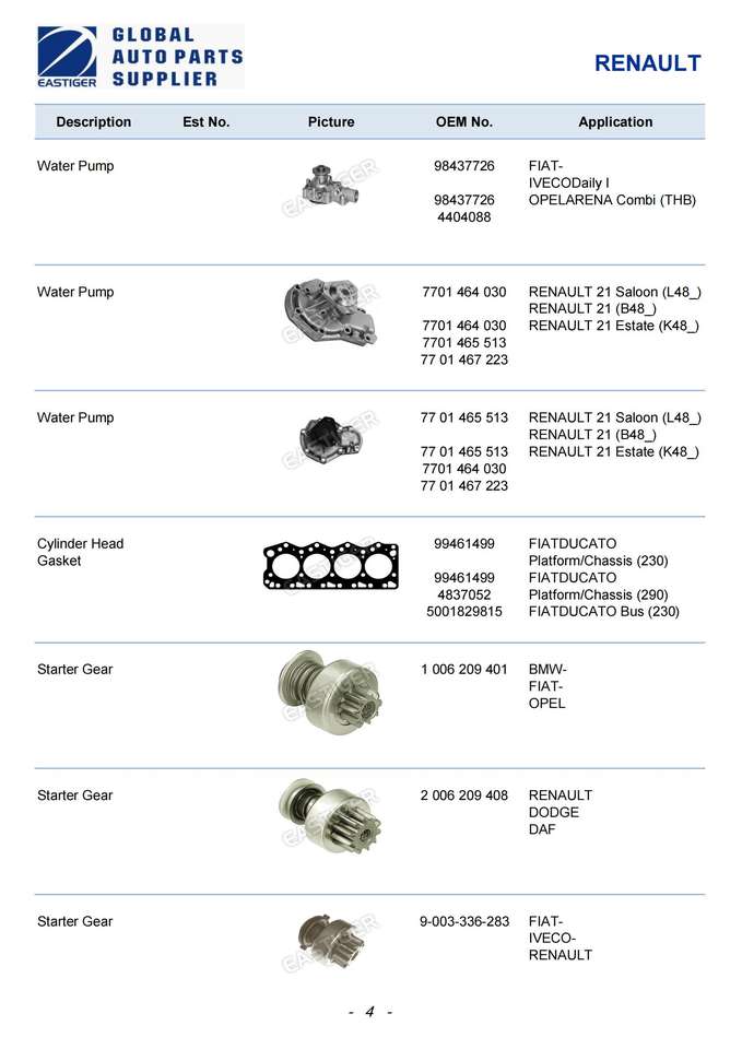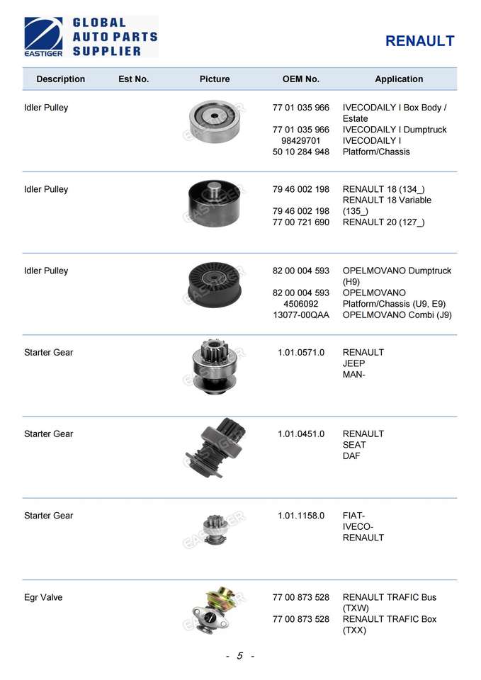 Pièces détachées pour camions RENAULT Magnum/Premium/Midliner/Série G/Série S et autres, plus de 2000 articles