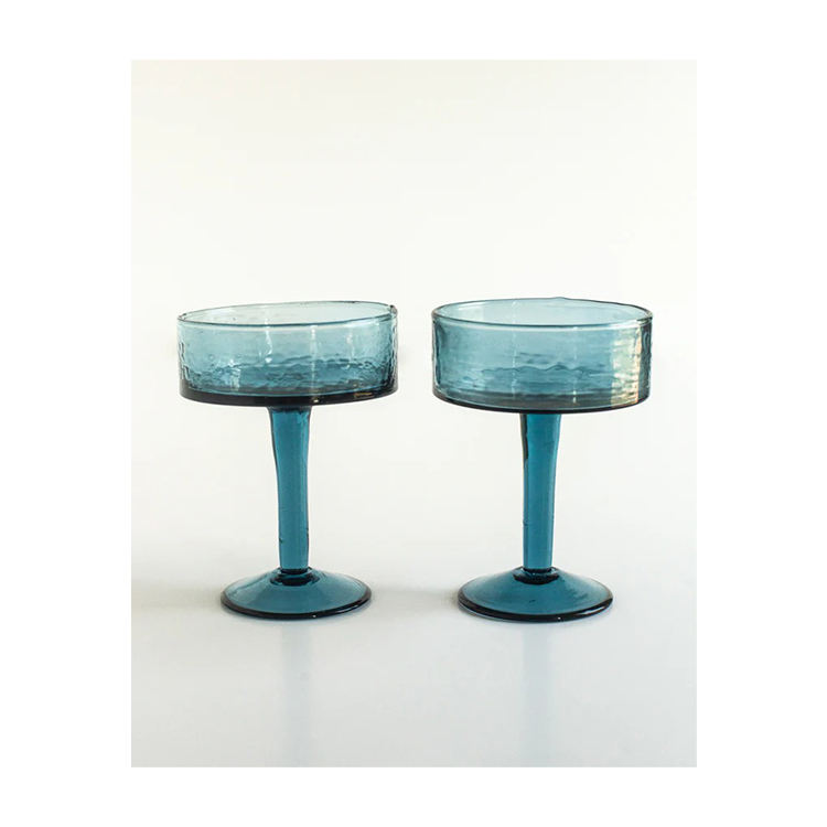 Divers logo et couleurs disponibles Design créatif soufflé à la main martelé coupé verre à cocktail paire